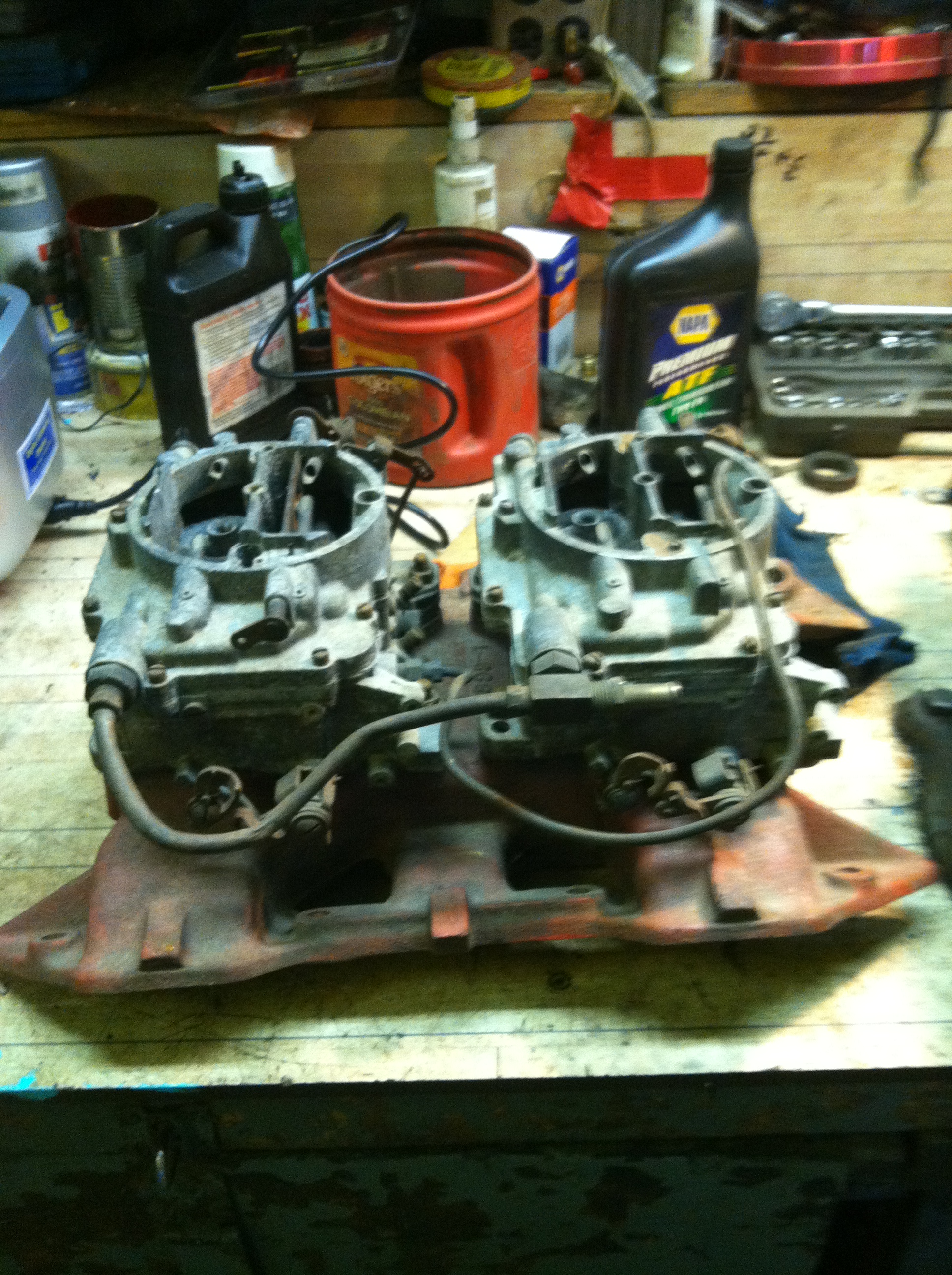 A little off Y blocks but if this works posting a picture, I picked up a dual 4 intake and carbs for a Mopar 361, 383, 400 B series engine with a set of carter AFB's. Wondering how they would work on a Y 2x4 setup. Ted did you test a pair of these in the dyno test?