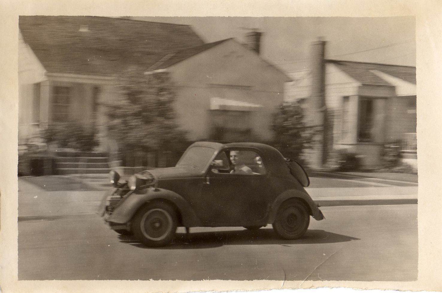 The Simca was a copy of the Fiat 500 made in France from machinery taken from Italy after WWll. It had a 4 speed no syncho transmission and a rag joint from the transmission to the rear end. This was taken in 1957.  I hope the picture makes it to the site. Pete