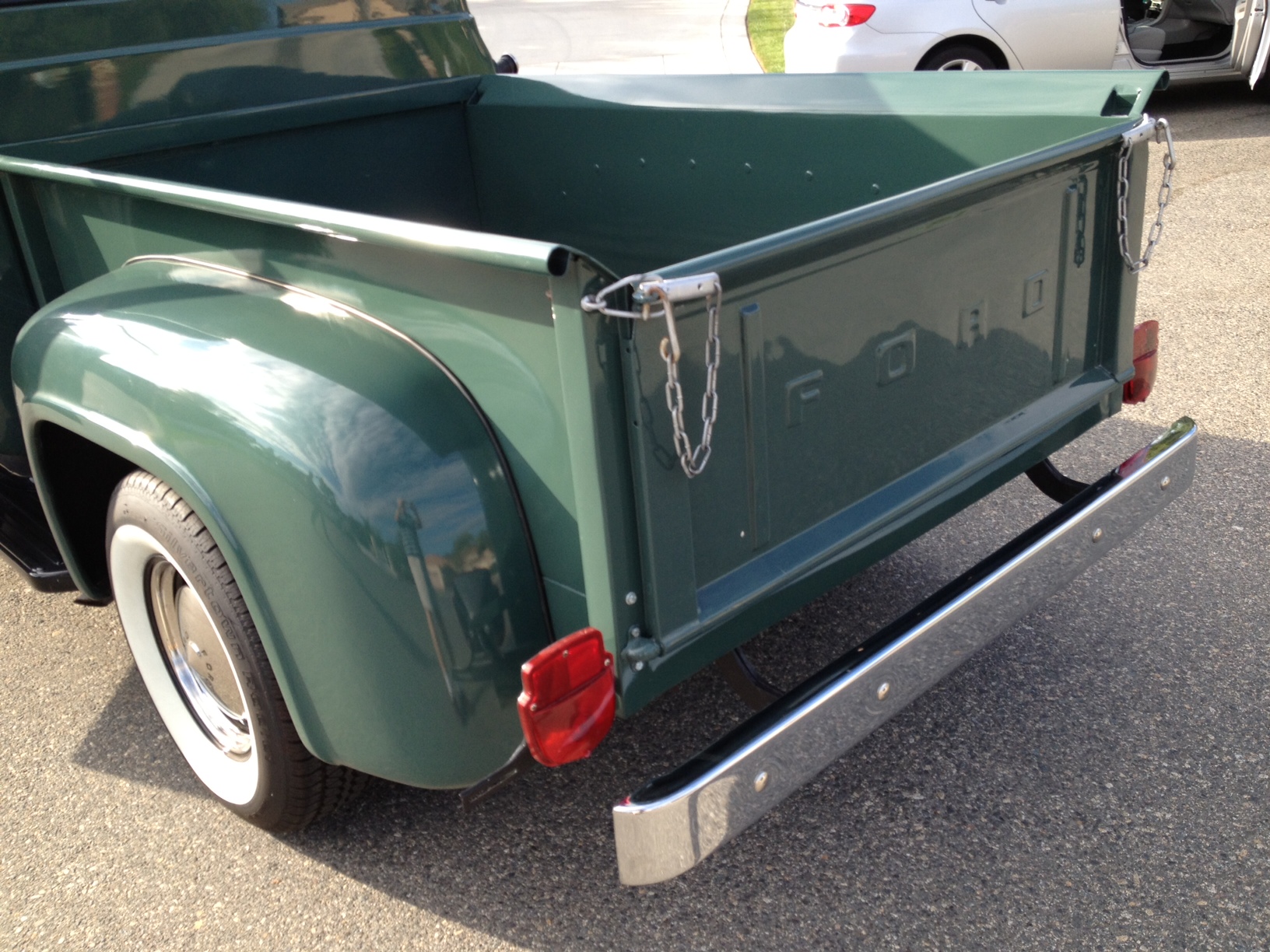 Nice looking truck. I have a 63 F250 Long Flare, paint's not as pretty as yours, but same color. I've added trim rings and anodized color dog dishes since this pic.