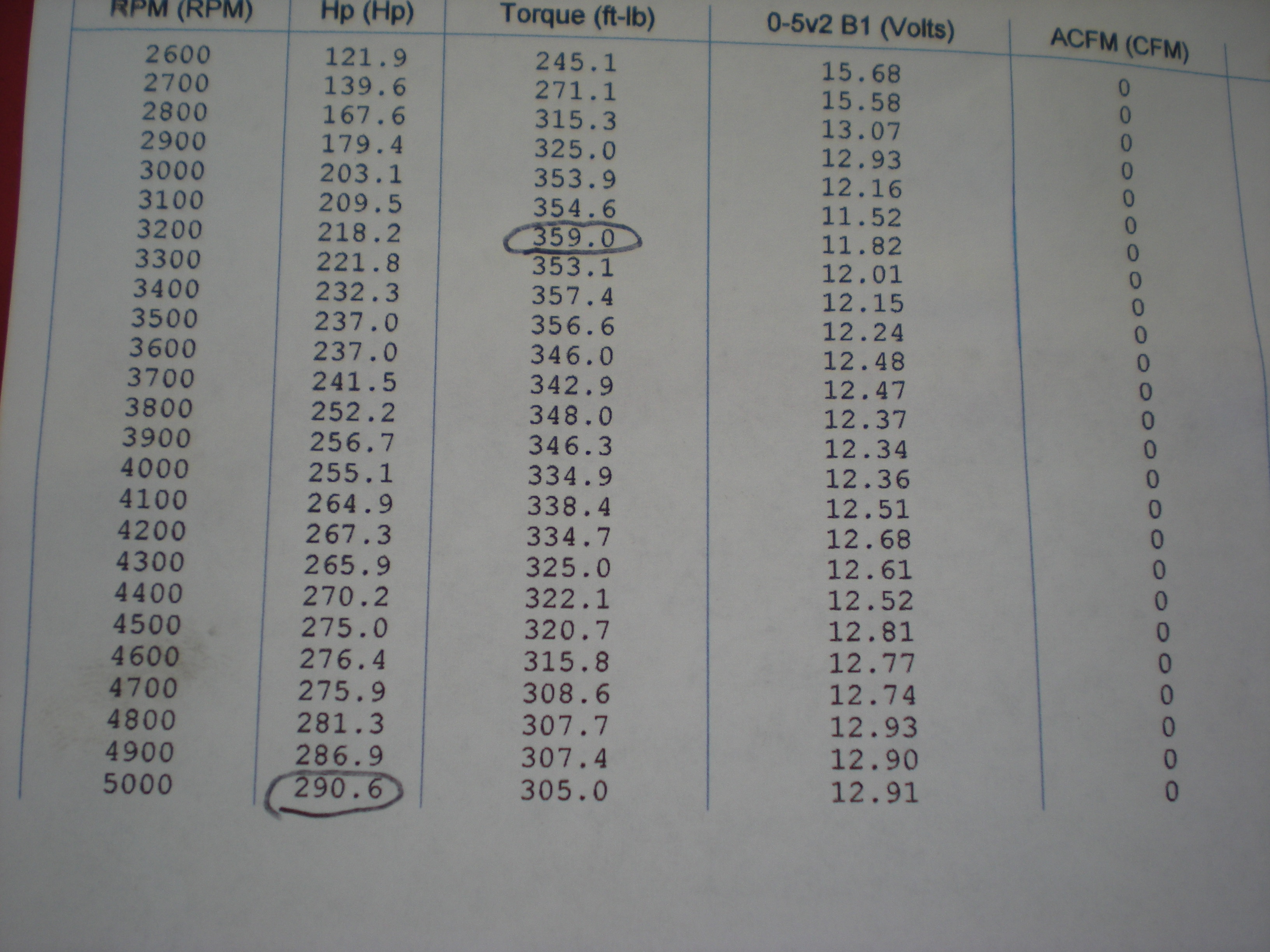 Oh,... Yes I have I printout, but I'm not too proud of the HP. The torque was good but we only ran the motor up to 5,000 RPM. He didn't think he needed to run mass air balance when we first broke the motor in without the blower hooked up, but I have the A/F ratio numbers. I don't know why he didn't want to measure air flow, but I wasn't going to argue with him because I don't know that much about it. I'll take a picture of the data and post it when I get a chance. Rono