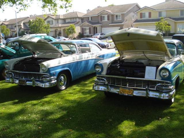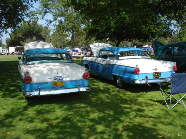 Rare sighting today at the SoCal Galaxie show in Anaheim Cali. 56 Customline Victoria and my 56 Fairlane Victoria. Looked at a lot of subtle differences...........JD